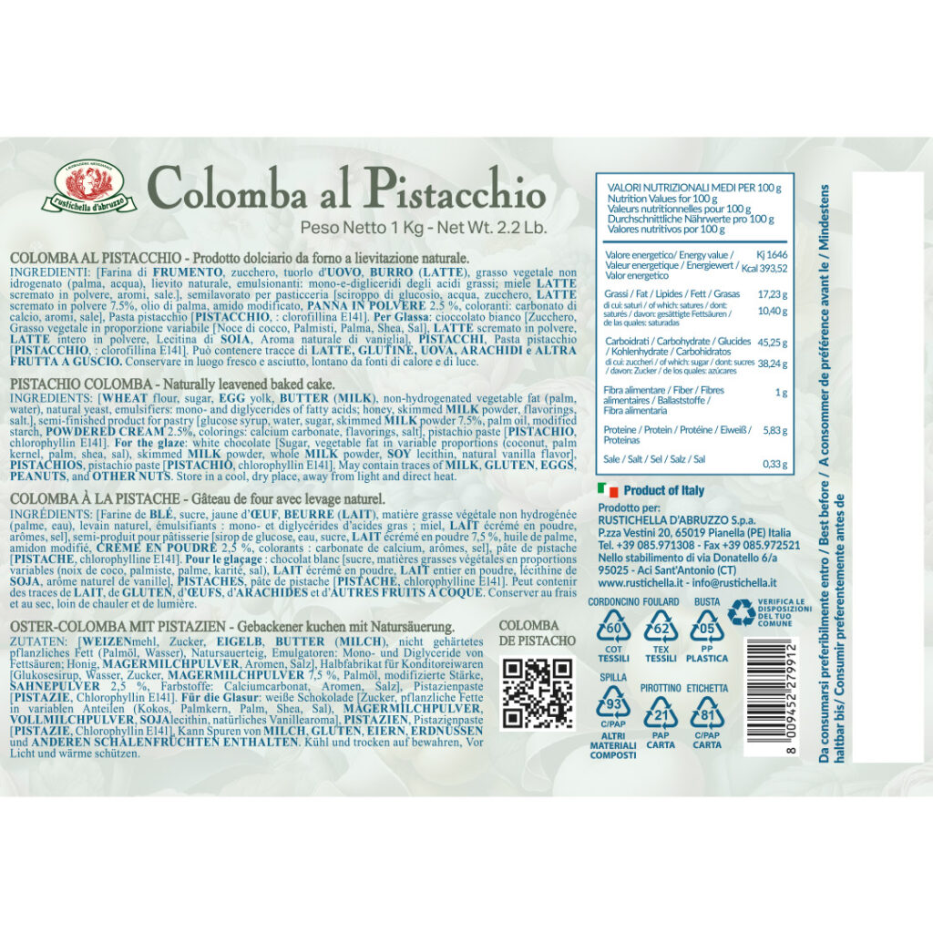 La Colomba Artesanal al Pistacho es una verdadera excelencia de sabor. Su masa tierna encierra una rica crema de pistacho que envuelve el paladar con elegancia e intensidad. El glaseado, generoso y refinado, está adornado con pistachos enteros, que aportan carácter y crujiente. Un postre preciado, pensado para quienes desean una experiencia de Pascua exclusiva e inolvidable.